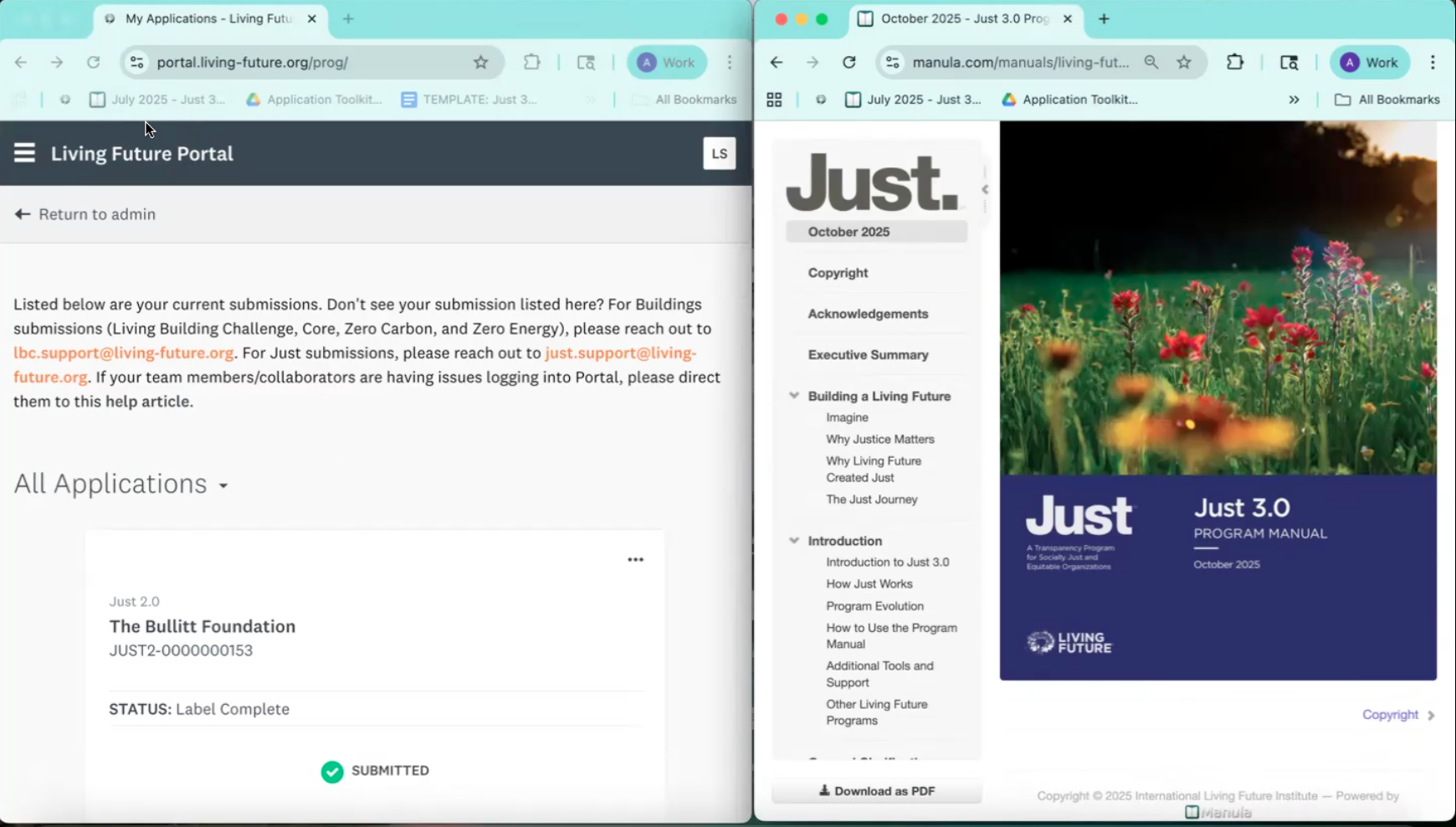 The purpose of this resource is to provide organizations with visual guidance on the alignment and navigation of the Just 3.0 Program Manual and Living Future's SurveyMonkey (Apply) application platform.